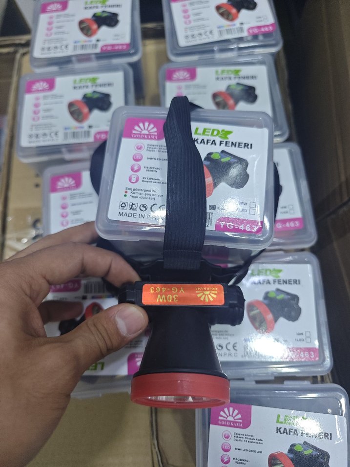 30W LED ışıklı, ayarlanabilir bantlı renkli siyah kafa lambası. Taşınabilir kutuda, eller serbest kullanım için uygundur.