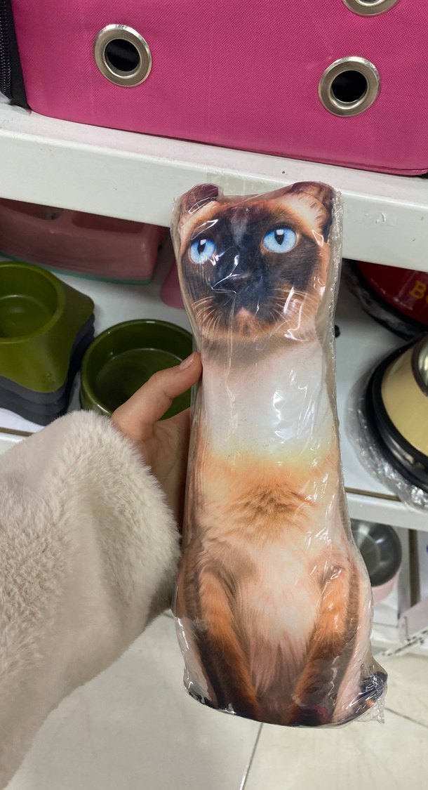 Detaylı yüz ifadesine sahip renkli kahverengi kedi şeklinde kedi oyuncağı.