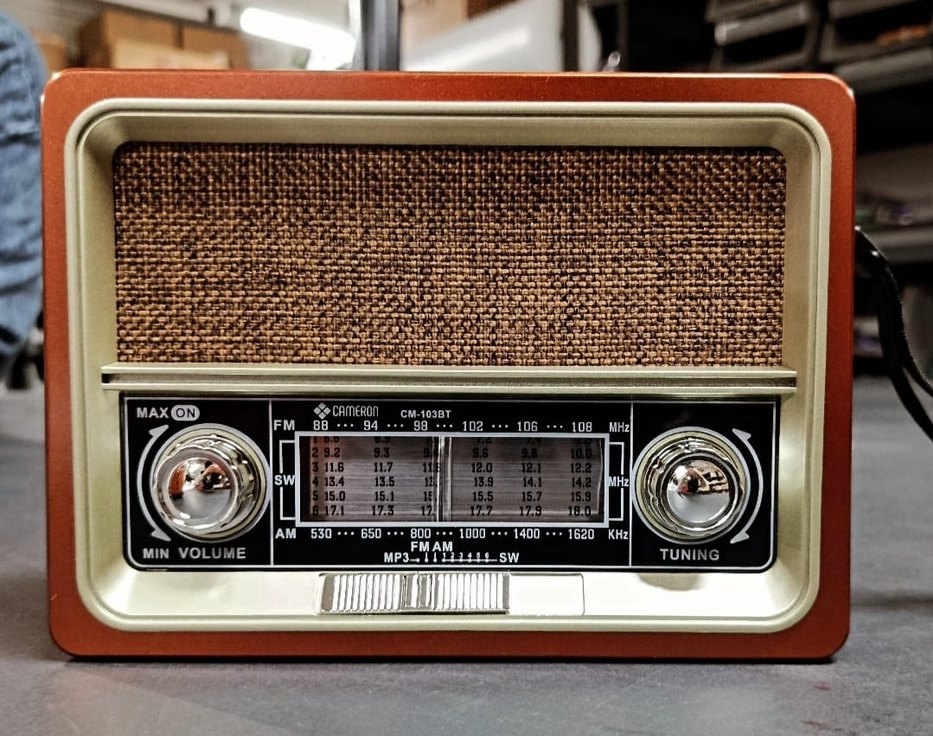 Renkli tasarıma sahip kahverengi müzik sistemi, FM, AM ve SW bantlarında manuel ayar yapabilir. MP3 uyumludur.