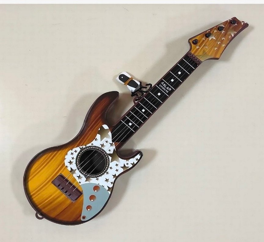 Yıldız desenli koruyucu ve detaylı klavyesiyle renkli kahverengi oyuncak gitar, müzikli oyun için uygun .