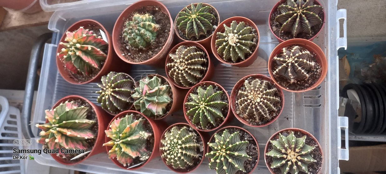 Kahverengi saksılarda çeşitli renkli kaktüsler, farklı şekil ve dokulara sahip, ev dekorasyonu için uygun . #gymnocalsium #gymnoLB #gymnoVOS adet fiati 155 lira toplu alımda pazarlığa açık