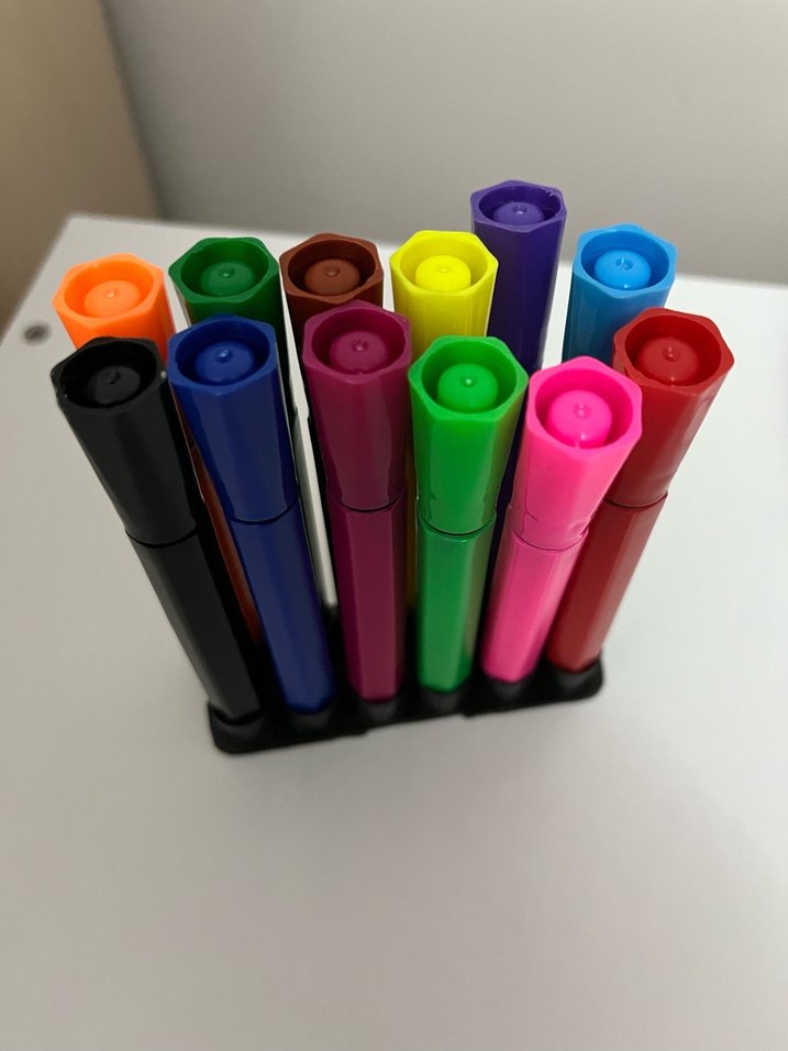 Çeşitli canlı renklerde renkli keçeli kalem seti.
