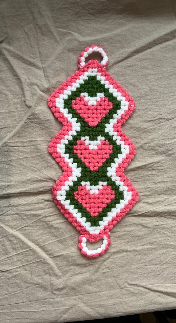 Renkli kalp desenli, yumuşak dokulu ve asma halkaları bulunan banyo süngeri. Nazik temizlik için uygundur.