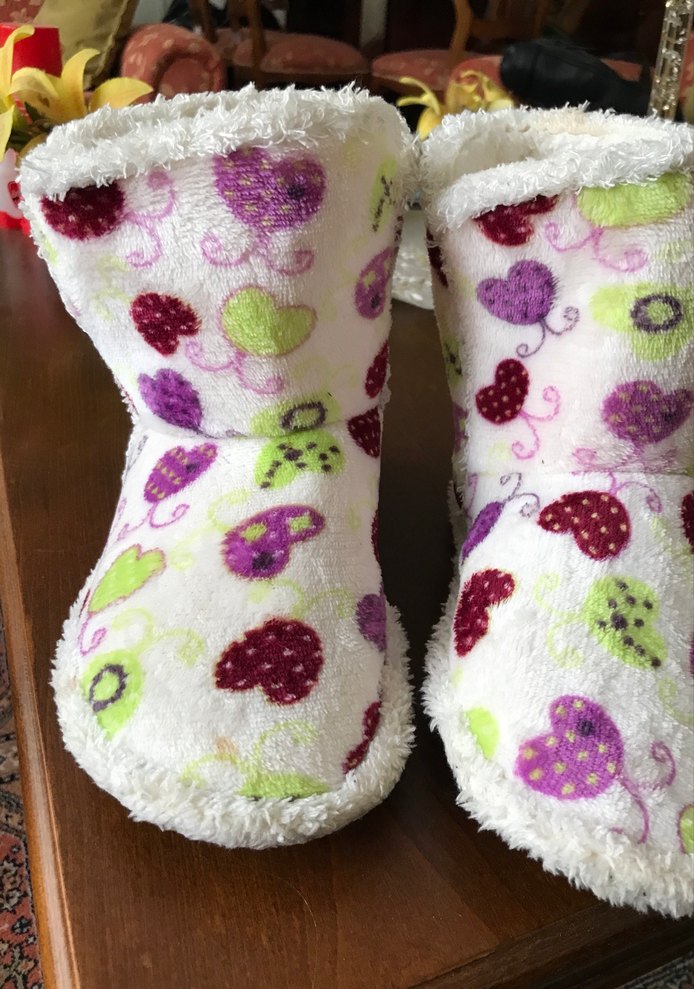 Yumuşak kürk dokusuyla örülmüş, nakışlı renkli desenlere sahip bayan ev botları.