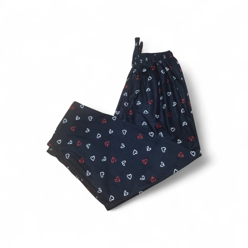 Rahat kesimli, renkli kalp desenli kadın pijama altı, konfor ve günlük kullanım için uygundur.