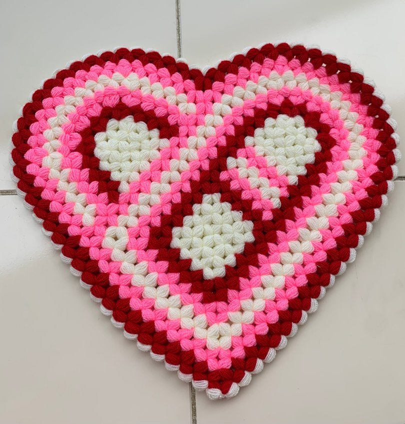 Yumuşak iplikten yapılmış, kırmızı, pembe ve beyaz tonlarında renkli kalp şeklinde banyo lifi .sipariş üzerine isteniler desenler yapılır