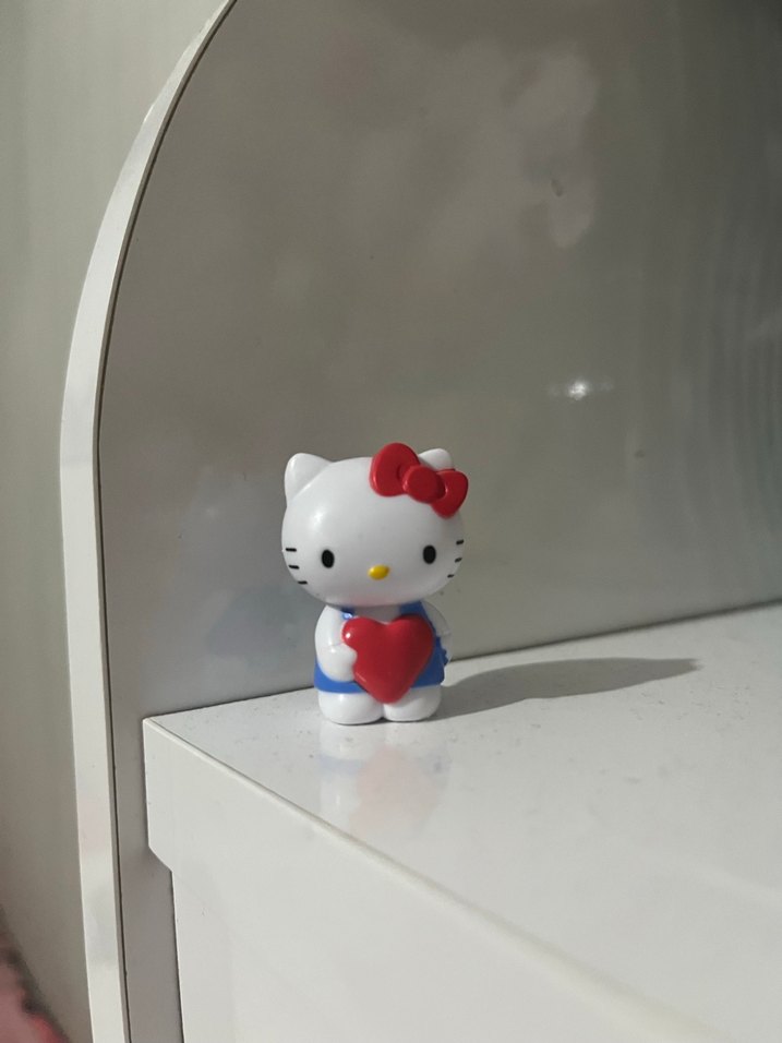 Renkli Kalpli Beyaz Hello Kitty Figür