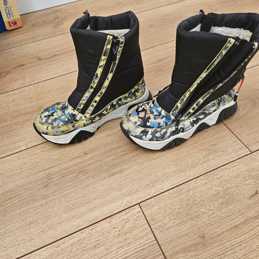 Kadın botları renkli kamuflaj desenli, dolgu topuklu ve fermuarlı olarak tasarlanmıştır. Kauçuk malzeme kullanılmış, günlük sokak stiline uygundur.