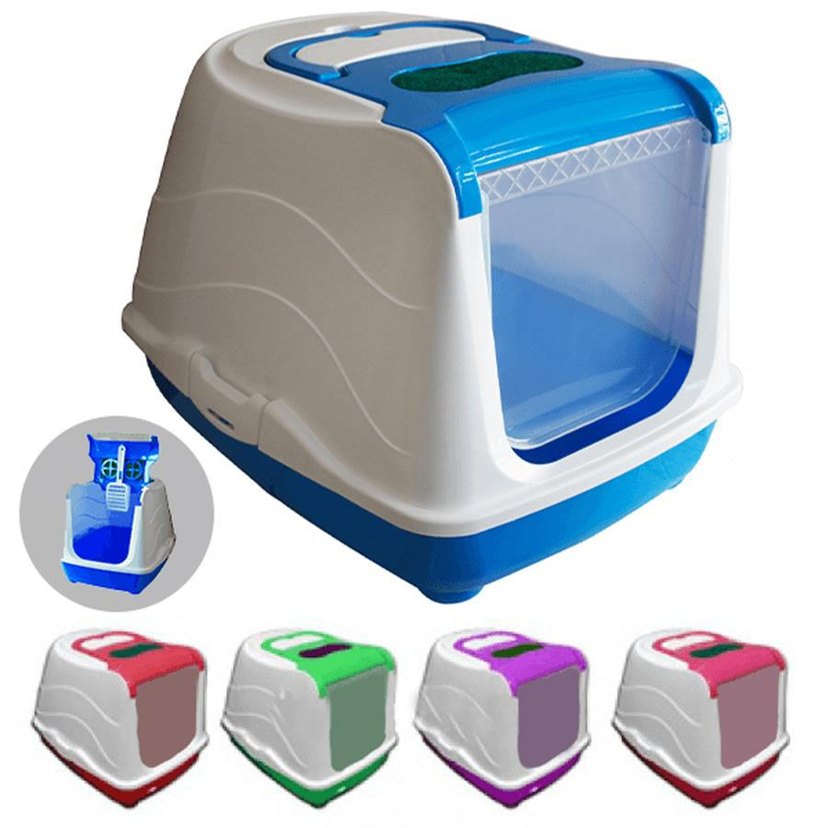 Renkli Kapaklı Kedi Tuvalet Kabı Mavi