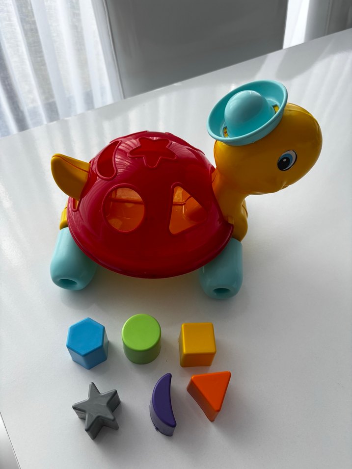 Renkli kaplumbağa şeklinde eğitici oyuncak, farklı şekillerle eşleştirme yapmaya uygundur. Öğrenmeyi ve motor becerileri destekler.