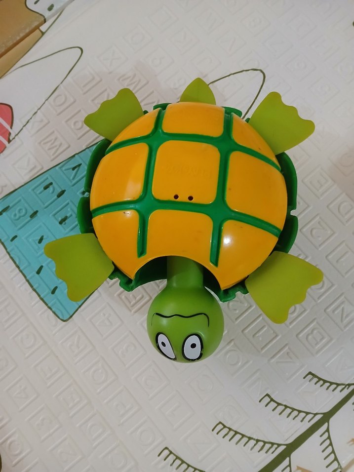 Canlı sarı kabuğu ve yeşil ayakları ile renkli kaplumbağa su oyuncağı, su oyunları için uygundur. Hiç bir sıkıntısı yok oynamadığı için satıyorum.