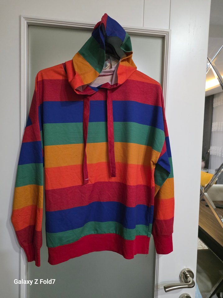 Renkli Kapüşonlu Kadın Sweatshirt 36 Beden