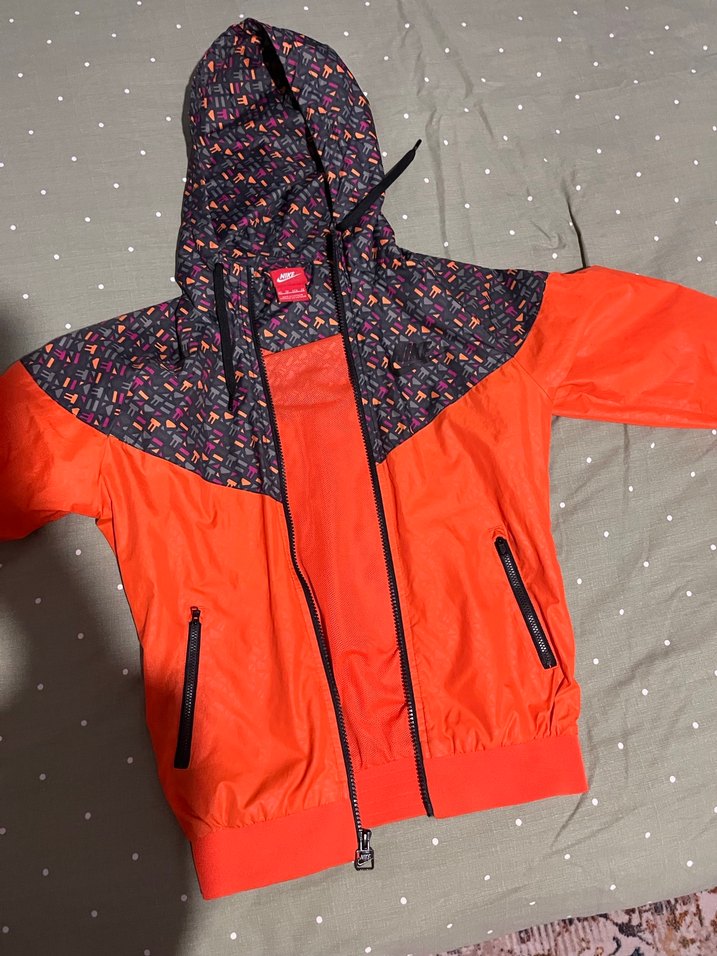 Dar kesim, yüksek yakalı ve fermuarlı kadın yağmurluğu. Sentetik kumaştan, renkli kırmızı ve desenli kapüşonlu, dış mekan için uygun.