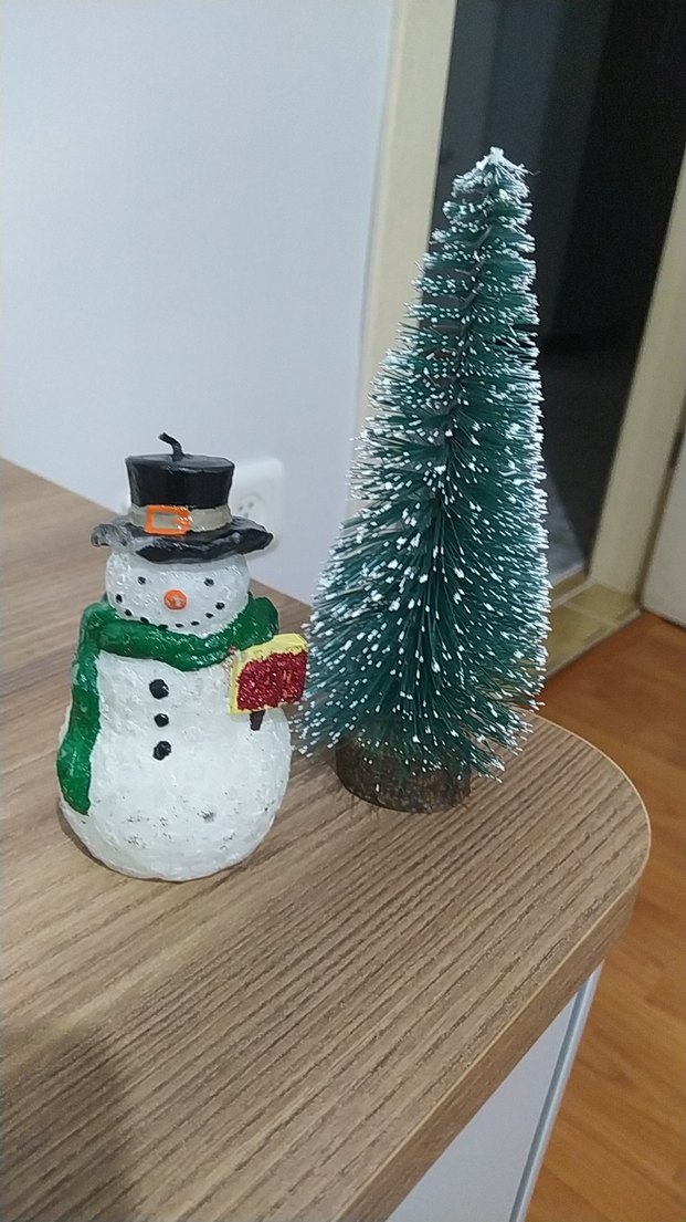 Renkli Kar Adam mum ve Mini Çam Ağacı
