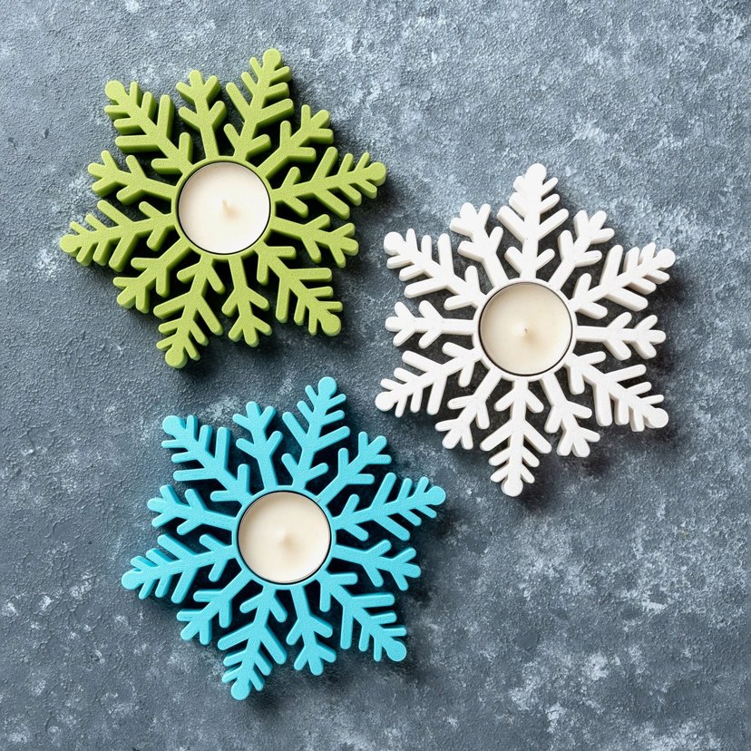 Renkli ve beyaz kar tanesi şeklinde, küçük mumlar için uygun dekoratif mumluklar. ❄️ 1 adettir farkli renklerde yapilabilmektedir