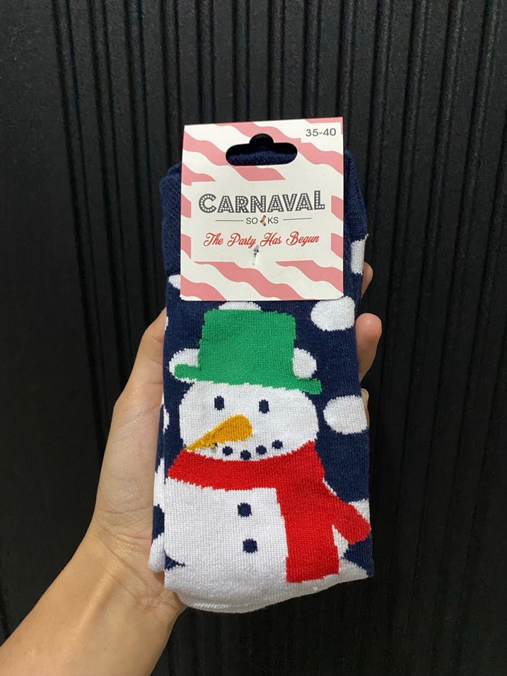 Yeşil şapkalı ve kırmızı atkılı kardan adam desenli renkli çorap, 35-40 numara aralığında.