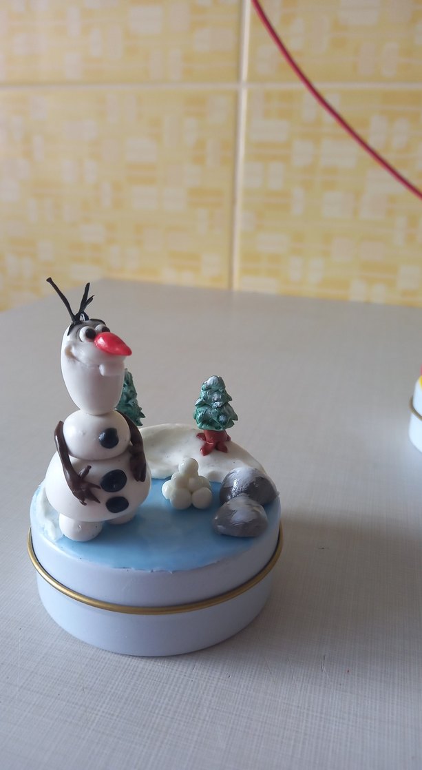 polimer kil olaf figürlü, kutu. istege bagli kutulara mum dökülür.