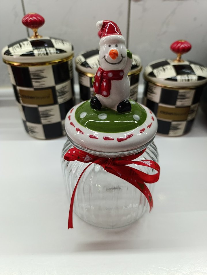 Renkli Kardan Adam Figürlü Cam Kavanoz