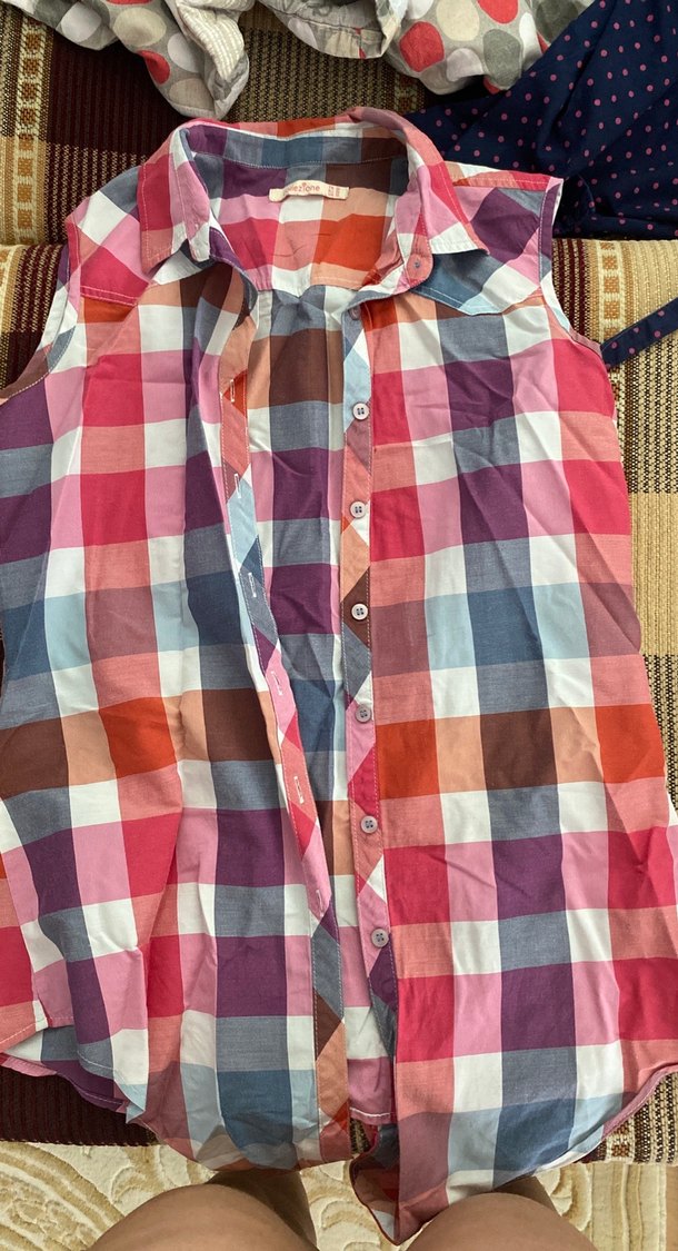 Renkli Kareli Düğmeli Kolsuz Gömlek