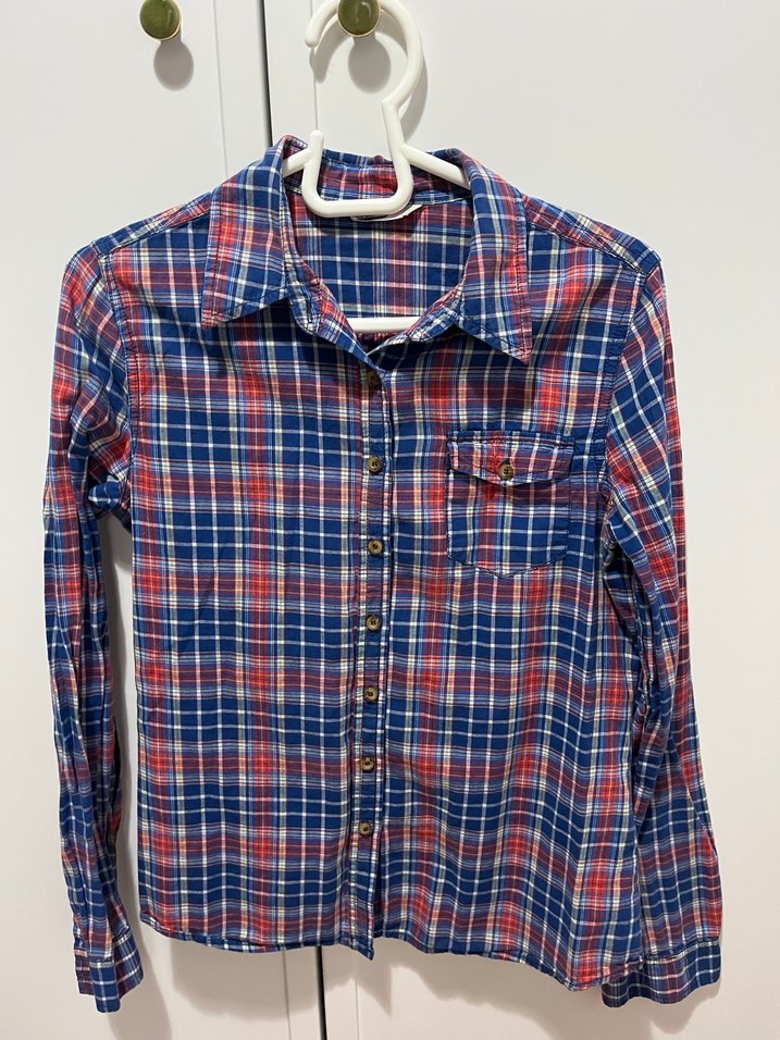 Renkli pamuklu gömlek, düğmeli ön, uzun kollu ve yakalıdır. Salaş kesimi ve cep detayıyla günlük kullanıma uygundur.