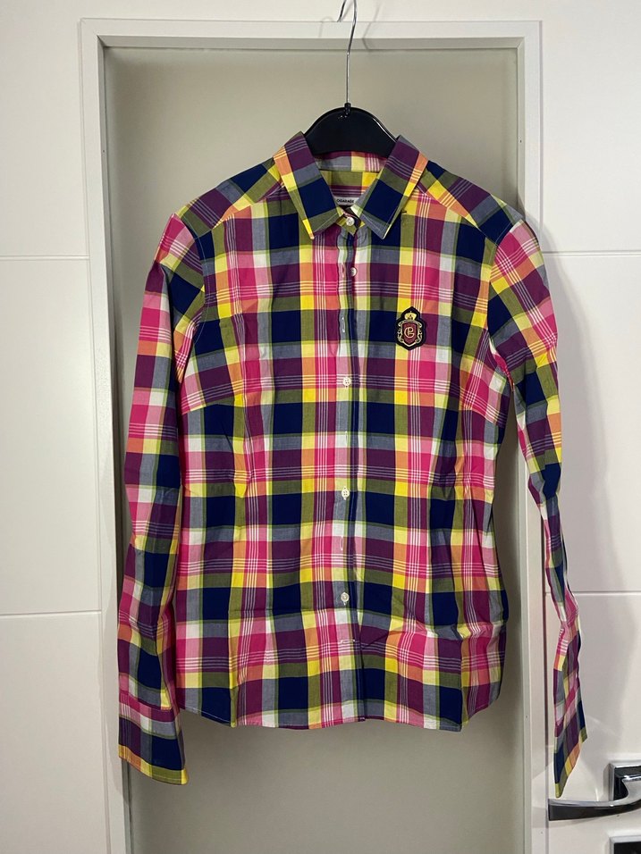 Uzun kollu, düğmeli ve yakalı kadın gömleği. Renkli kareli desenli, normal kesim ve sentetik kumaştan üretilmiştir. Günlük rahat sokak stili için uygundur. İki kez kullandım temizdir