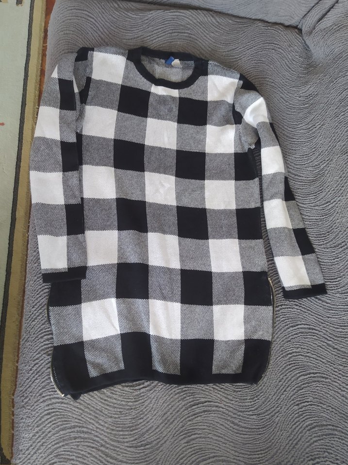 Renkli kareli, iki yandan kısa fermuarlı, uzun kollu, yuvarlak yakalı ve rahat kesimli bu triko kazak. Günlük sokak stili için uygundur.