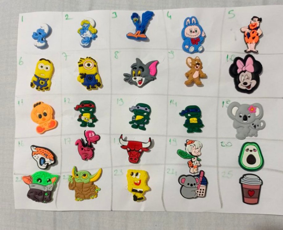 Şirin, Minyon, Tom ve Jerry, SüngerBob gibi popüler figürlerin renkli animasyon karakter seti. Cross terlik süsü. adet fiyatı 12,5 tl'dir.