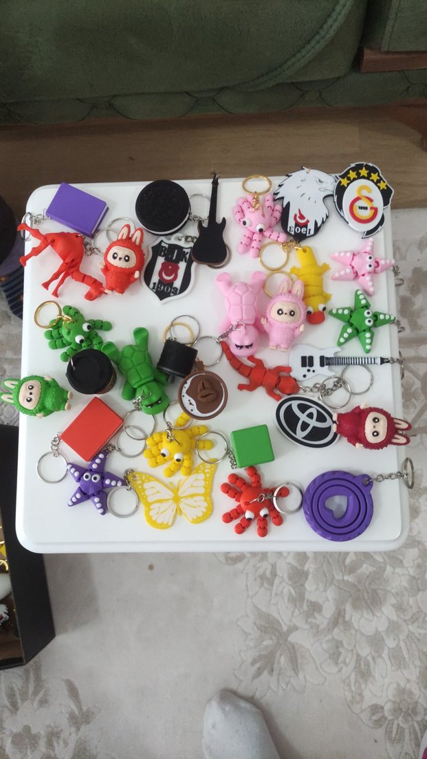 Çeşitli şekillerde hayvanlar, semboller ve objelerden oluşan renkli anahtarlık seti. Her anahtarlık canlı renklerde ve farklı tasarımlarda. ️ 3d anahtarlıklar istediğiniz sayıda temin edilir. labubu, kitap deniz yıldızı kamlumbaga oreo vs