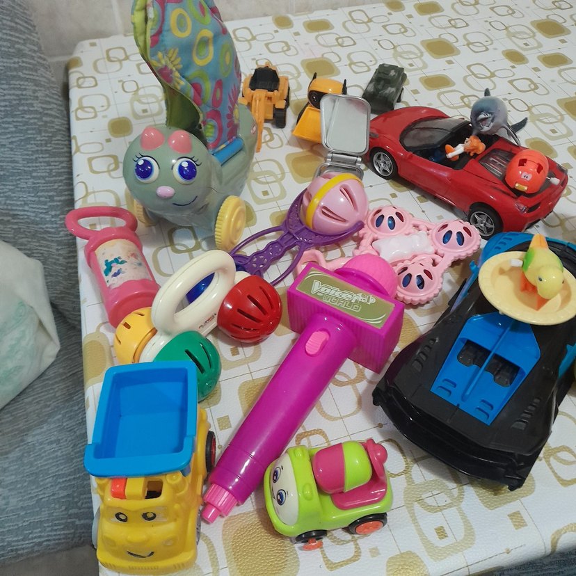 Arabalar, mikrofon ve oyuncak figürlerden oluşan renkli çocuk oyuncakları seti. Canlı ve çeşitli tasarımlarla eğlenceli oyun zamanı sağlar.