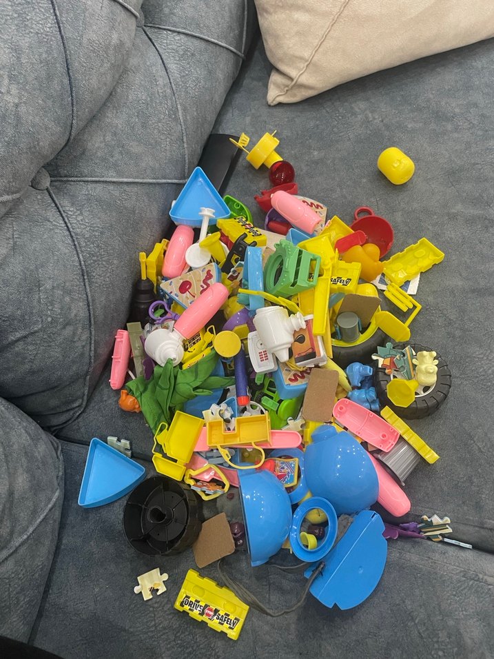 Çeşitli şekil ve boyutlarda renkli oyuncak parçalarından oluşan set, yaratıcı oyun ve montaj için uygundur.