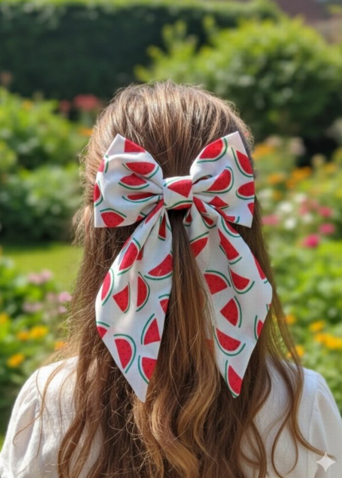Renkli Karpuz Desenli Beyaz Fiyonk Toka