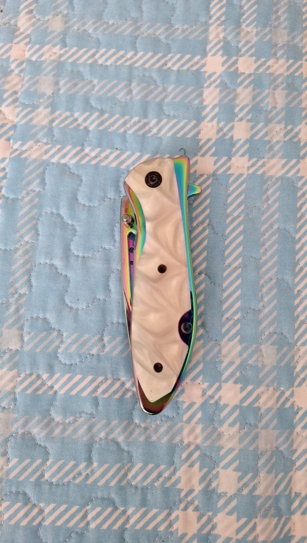 Renkli, canlı saplı katlanır çakı. Düzgün ve kıvrımlı tasarımıyla kompakt yapıya sahiptir.