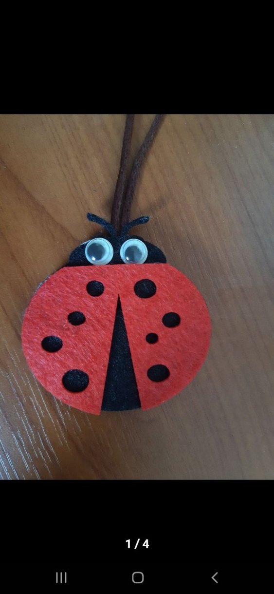 Kırmızı ve siyah detaylara sahip, hareketli gözlü ahşap uğur böceği .
