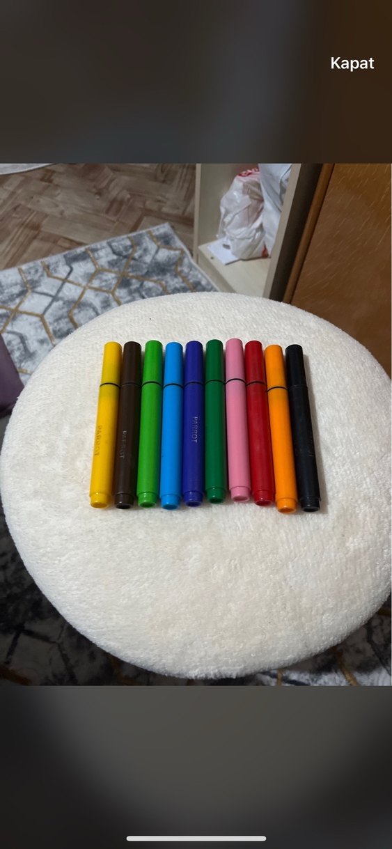 Çeşitli canlı renklerde, yazı ve çizim için uygun renkli keçeli kalem seti. ✏️