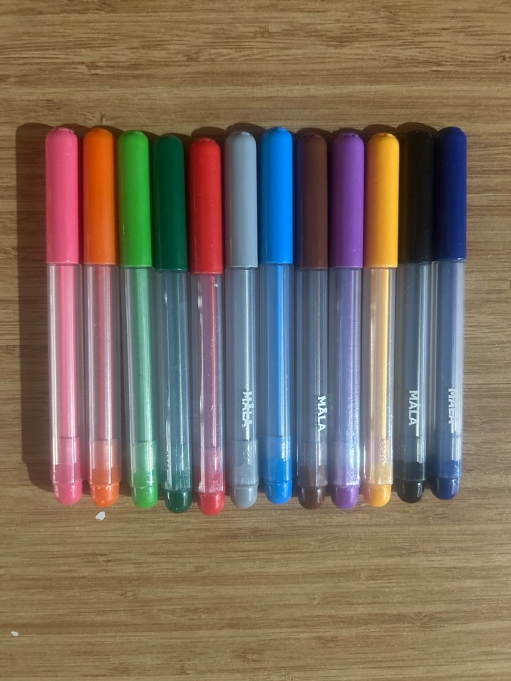 Şeffaf gövdeli, çeşitli renklerde canlı kapaklara sahip renkli ince uçlu kalem seti. Yazı ve çizim için uygundur. ️