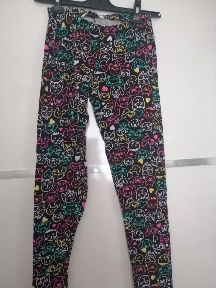 Renkli baskılı, elastik kumaştan yapılmış, sıkı kesim kız çocuk taytı, sokak modası için uygundur.