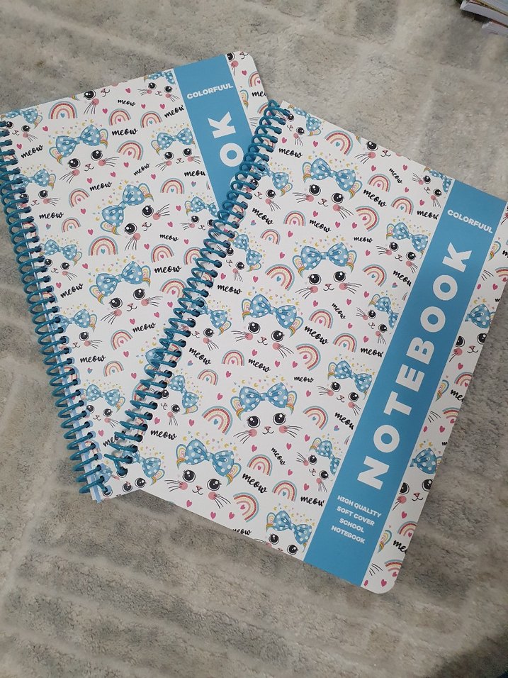 Renkli kedi deseni, spiralli defter. tekli fiyattır.içinde stickerler bulunmakta