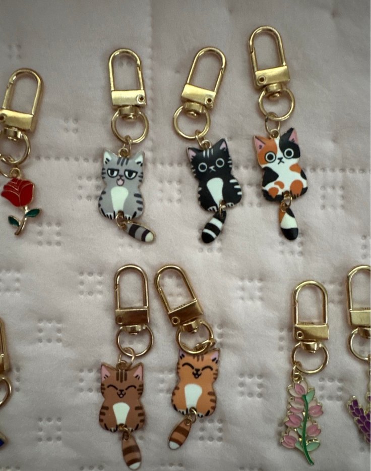 Tokalı klipsli, renkli ve sevimli kedi desenli anahtarlıklar, bohem ve rahat sokak stili için uygun. Adet fiyatıdır