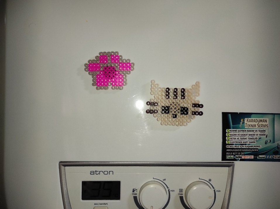 adet fiyati 40 tl Hama boncuklu mıknatısli süsler Piksel sanat tasarımlı renkli kedi temalı mıknatıslı aksesuarlar. Herhangi bir manyetik yüzeye eğlenceli bir dokunuş katar.