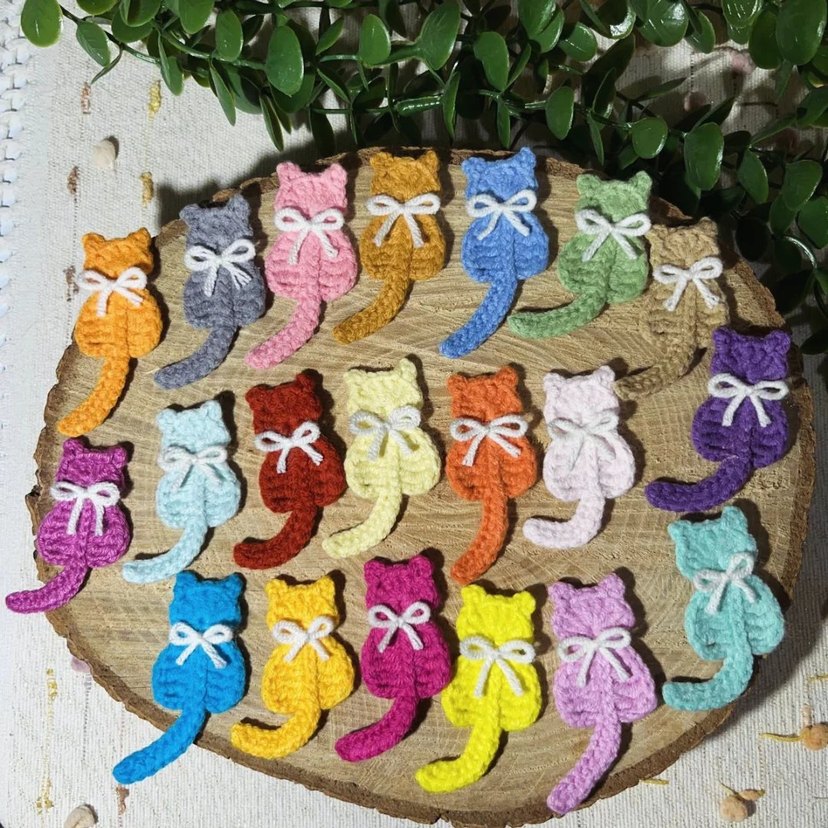 20 adet fiyatıdır.Küçük beyaz fiyonklu renkli örgü kedi figürlü obje, kedi severler için sevimli aksesuarlar .Hırka,battaniye,toka vs. için kullanılabilir. #kediaksesuar #kedi #örgükedi #kediobje #figür #örgüfigür #elemeği