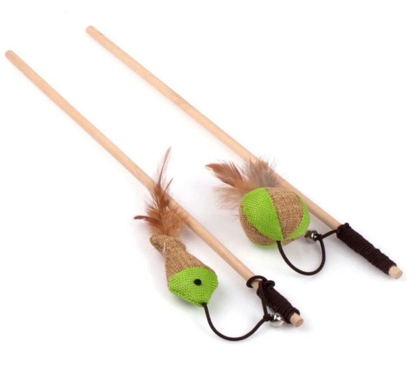 Doğal tüyler ve yumuşak kumaştan yapılmış, yeşil tonlarında renkli kedi oltası oyuncağı kedilerin gözdesi. Sıfır üründür istenilen model gönderilecektir.