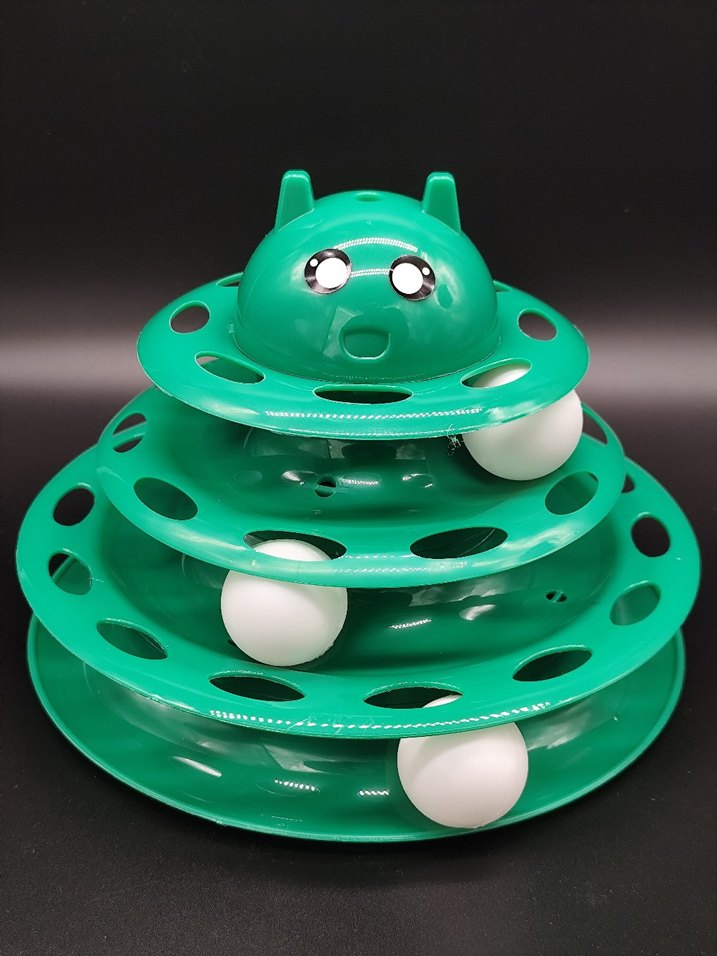 Renkli , beyaz toplu, çok katmanlı kedi oyuncağı. Hareketli toplarla kedilerin ilgisini çeker.