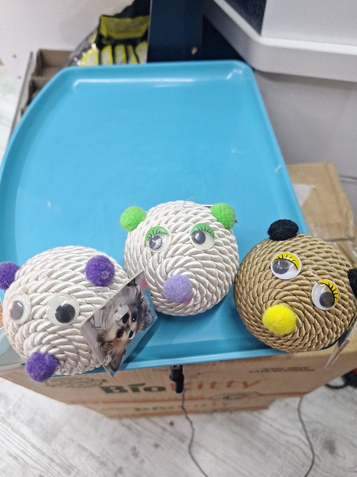 Kedilerin ilgisini çekecek, eğlenceli gözler ve ponpon detaylı, bükülmüş ipten yapılmış renkli kedi oyuncagi seslidir