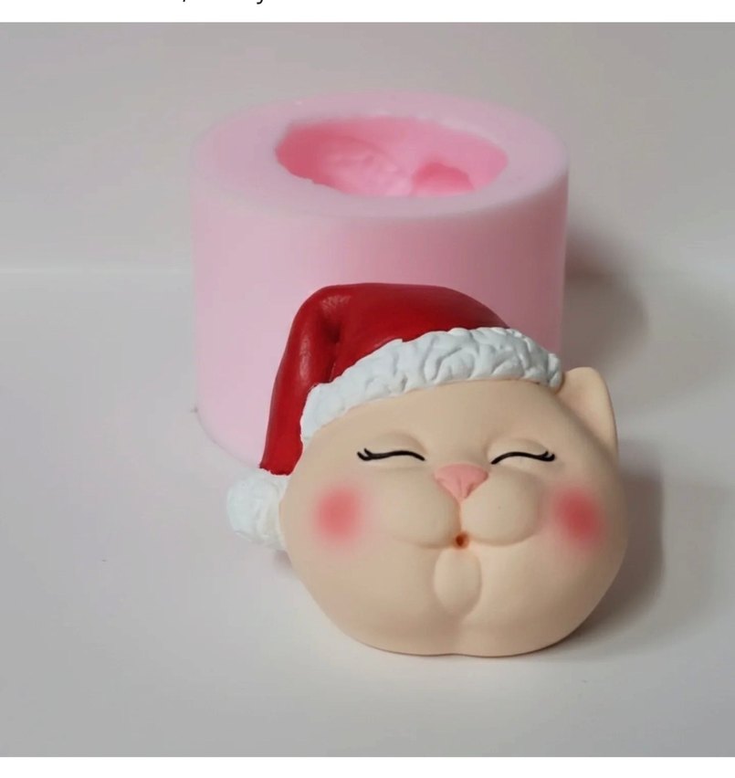Renkli silikon kalıp, kedi yüzü ve Noel şapkası detaylarıyla el işi ve pasta yapımına uygundur.