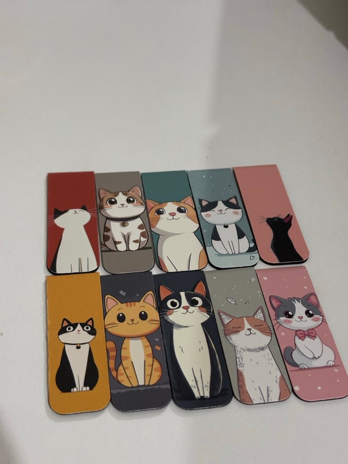 Çeşitli sevimli kedi çizimlerine sahip renkli kedi temalı kitap ayraçları seti. Hafif ve kedi severler için ideal . Adet Fiyatıdır