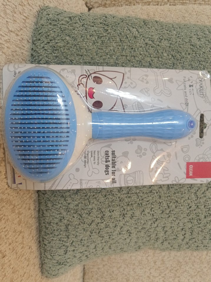 Kediler ve köpekler için yumuşak kıllara sahip renkli mavi tüy tarama fırçası.
