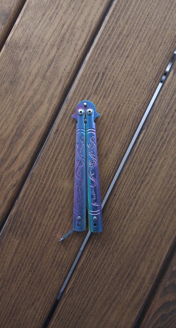 Oyma desenli, renkli ve çok renkli kaplama ile kelebek bıçak. ️