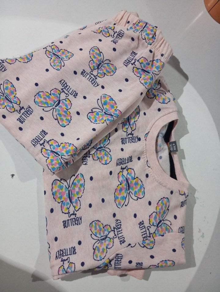 Yumuşak ve rahat kumaştan, renkli kelebek desenli çocuk atlet takımı.