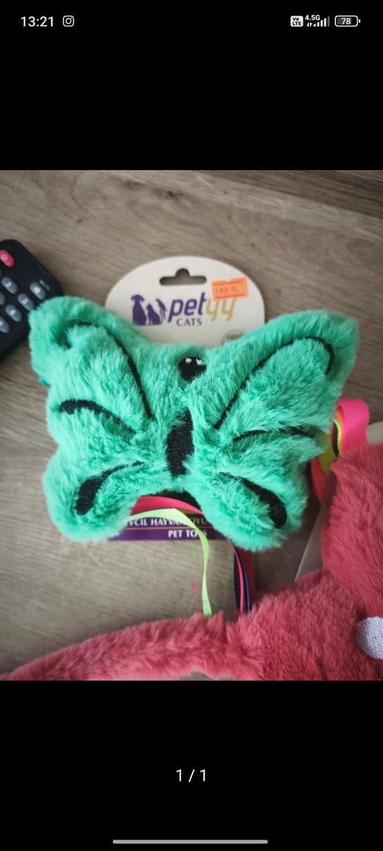 Yumuşak kumaştan yapılmış, renkli kelebek şeklinde Espety Cats markalı kedi oyuncağı.