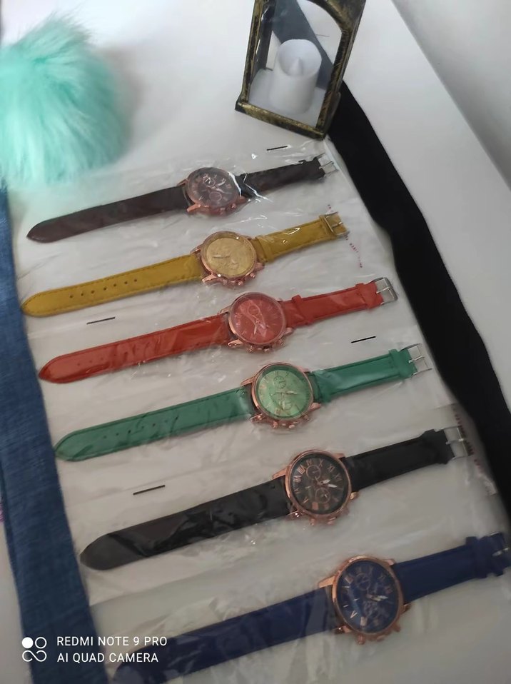 Renkli kemerli kayışlara sahip, farklı tonlarda kadın saatleri. Bohem Paris tarzını yansıtan canlı renk seçenekleriyle. ⌚ TANE FİYATIDIR